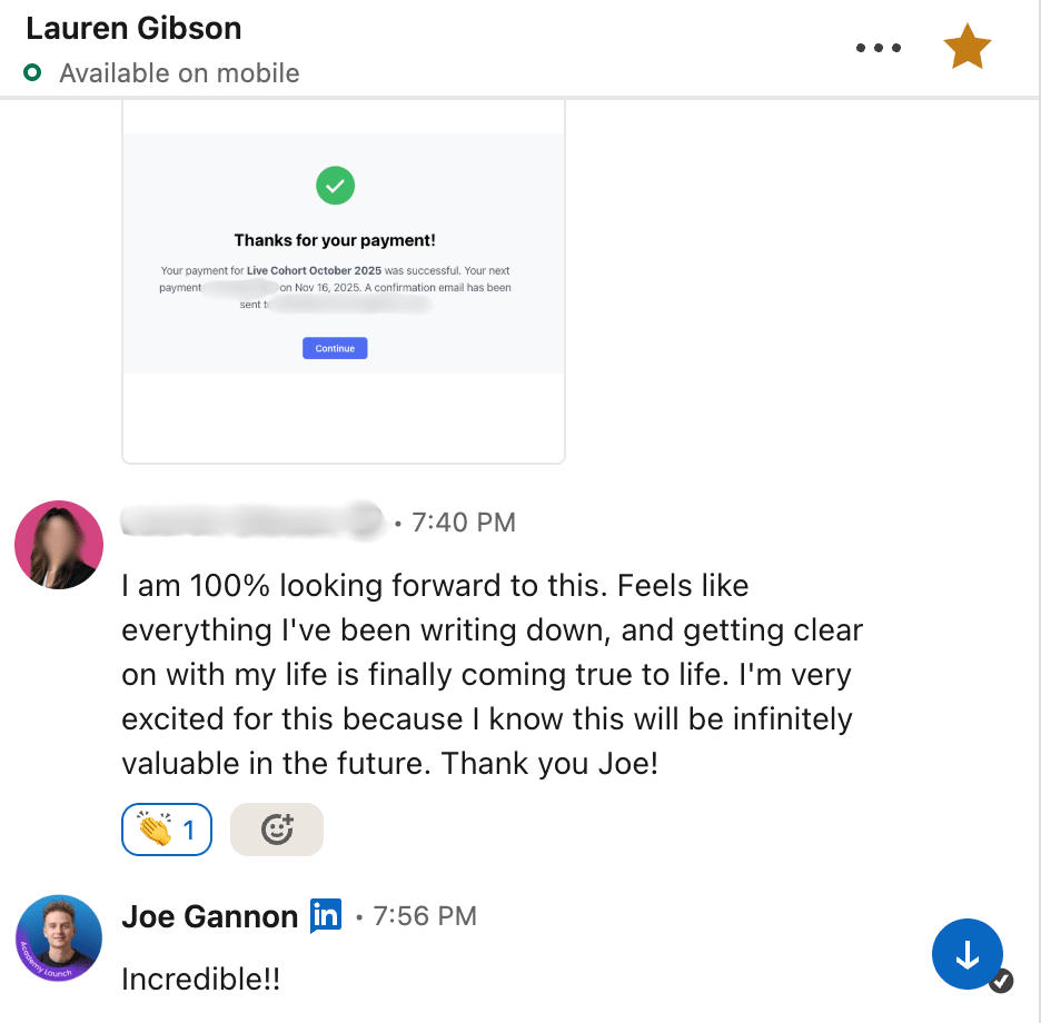 I've had the best week meeting you guys and hearing exactly what you need! A large piece of feedback was: "Joe, they all look great, but what option is best for me?" Clarity is ESSENTIAL for your personal brand. Turns out, it's also pretty important when launching your baby into the world... 😉 So I wanted to break down the different options for you - as I got excited - and shared 3x options all at once! Course, Community & Cohort. Course (Self-Paced) At the core of everything is Personal...