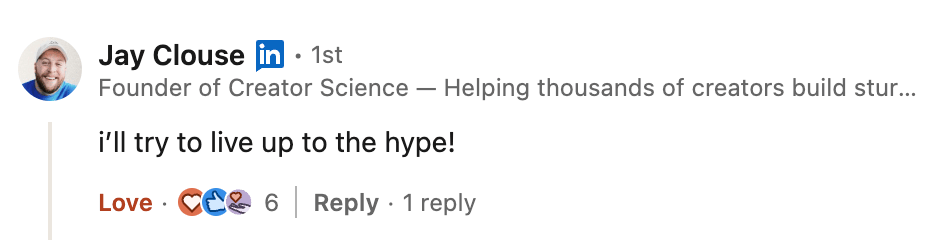 This is a dream come true for me. When I first had the idea for building a community, I thought about who I’ve had the pleasure of knowing in my career. Proximity is power. The best in the world move different. They think different, operate different, and execute every day on their craft until they’ve mastered it. Now, inside my community, you get to hear from them too. We’ve got 8x incredible masterclasses starting soon, with: 1/ Ali Abdaal: Entrepreneur, YouTuber and Productivity Expert Ali turned curiosity into a career and built one of YouTube’s most trusted education brands. Inside our community, Ali will be sharing how to build a personal brand that scales joyfully - not just successfully. 2/ Jay Clouse: Founder of Creator Science Jay has spent years decoding how creators build leverage. He’s one of the most respected voices in the creator economy and has built an incredible podcast and membership that teaches you how to be a smarter creator. 3/ Cliff Weitzman: CEO of Speechify Speechify helps over 55 million people learn, read, and grow. Cliff will take you behind the journey of building products that change people’s lives, and will inspire you with his high agency approach to business and life. 4/ Nausheen Chen: Founder, The Confidence Accelerator Nausheen has coached TEDx speakers, CEOs, and creators to communicate with calm, clarity, and conviction. Inside her masterclass “How to Speak with Influence” she’ll share proven frameworks and delivery techniques that will elevate your confidence and presence. 5/ Olly Richards: Founder of StoryLearning Olly Richards is the mentor behind your favourite creators. Learn from Olly how to scale your education business to 7+ figures whilst keeping your freedom and integrity intact. He’s a wealth of knowledge for educational businesses and somebody I respect a lot. 6/ Justin Moore: Founder, Creator Wizard | Sponsorship Coach Justin has helped creators earn over $5M in brand deals. 7/ Dani Markovits: Former Creator Manager at LinkedIn Few people understand the creator ecosystem like Dani. With 4 years of experience working at LinkedIn, Dani’s worked with some of the world’s biggest companies, executives, athletes, and startups - helping them to use LinkedIn to its full potential. 8/ Stanley (Your Content Coach): Your AI Content Advisor We’re bringing in the world-class team at Stan to give you a workshop in how to use their cutting-edge AI tool: Stanley. I wanted you to have it too. See what the Stanley hype is about here: